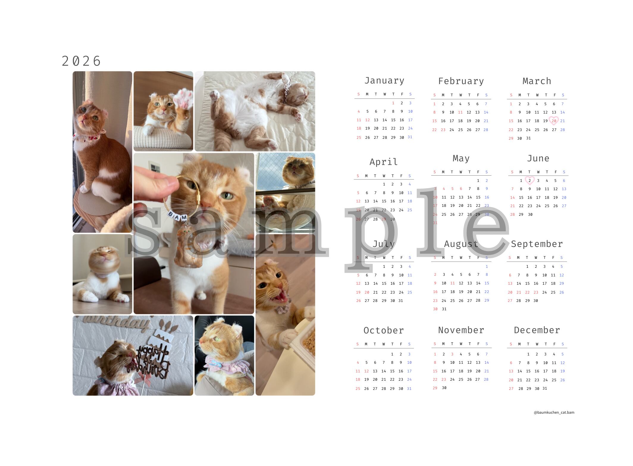 ※カレンダーは丸めたり折ったりせず、お届け致します